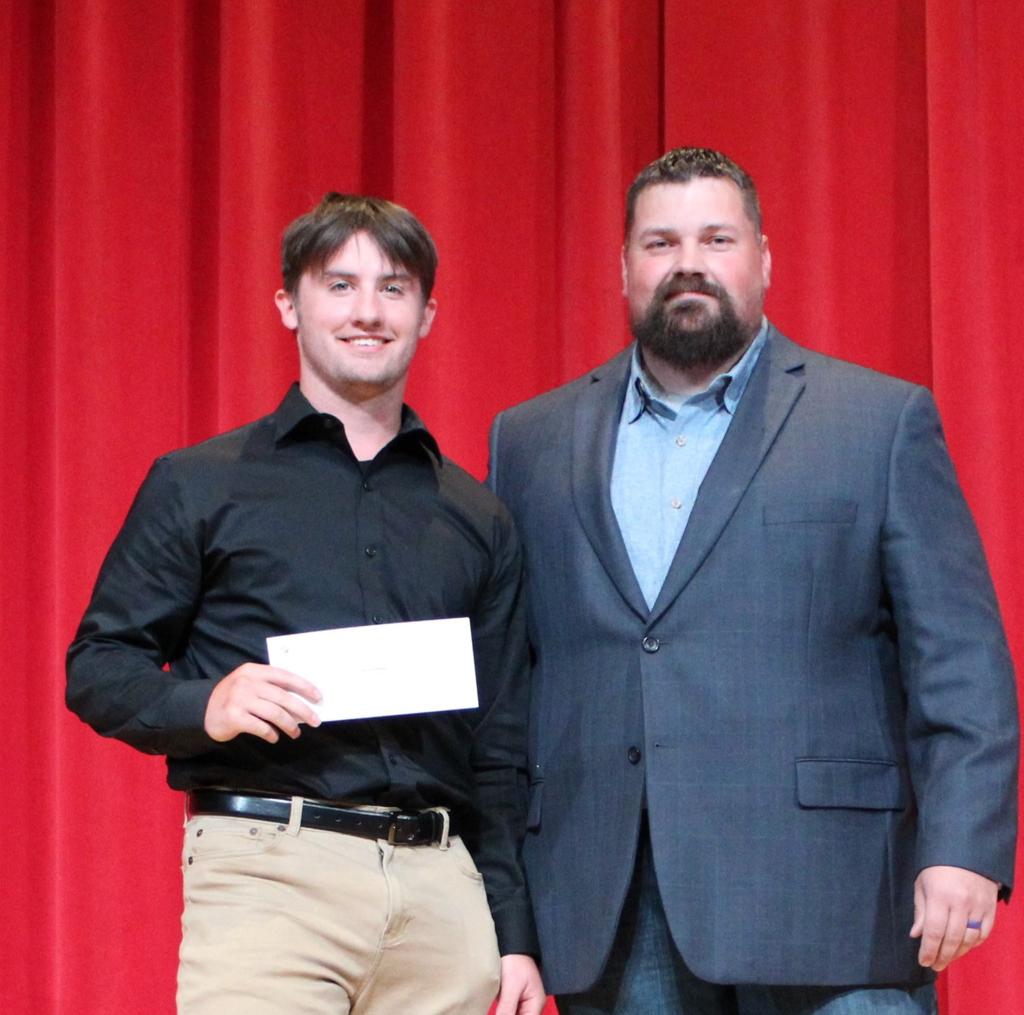 Ed Determan presents Jacob Robillard with the 2025 Youth Football Scholarship!